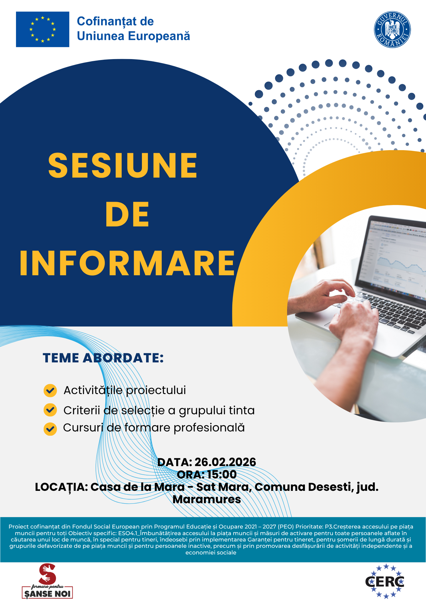INVITATIE SEMINAR 26.02.2026 Caută Caută după: Categorii Creșterea competențelor digitale Educatie Avansata Forța de munca a viitorului Full Service Job Investeste in Tine Manager Social Rural Noutăți Profesionex Proiecte finalizate Proiecte în derulare